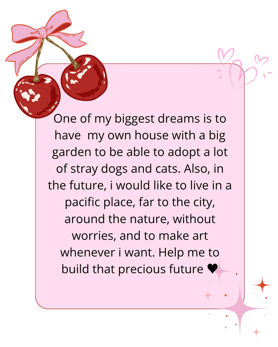 If u have been here for years meeting me, u already know that one of my biggest dreams is to buy a house for my mom, and if is possible a home with a big garden for can help street dogs and cats.